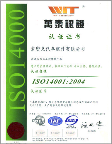 公司已先后通過IATF16949質量管理體系認證、ISO/14001環境管理體系認證和OHSAS18001職業健康安全管理體系認證。是“國家高新技術企業”“行業龍頭企業”和“全國百家優秀汽車零部件供應商”。